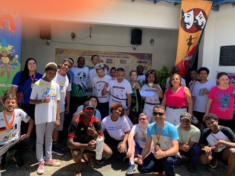 A APAE Nova Friburgo participou, nesta semana, de uma roda de capoeira na Centro de Convivência Paula Cerqueira, no município de Carmo. A atividade reuniu o Grupo de Capoeira do Centro Dia Especializado (CDE) da instituição e integrantes da comunidade terapêutica em um momento marcado por integração, movimento e troca de experiências.